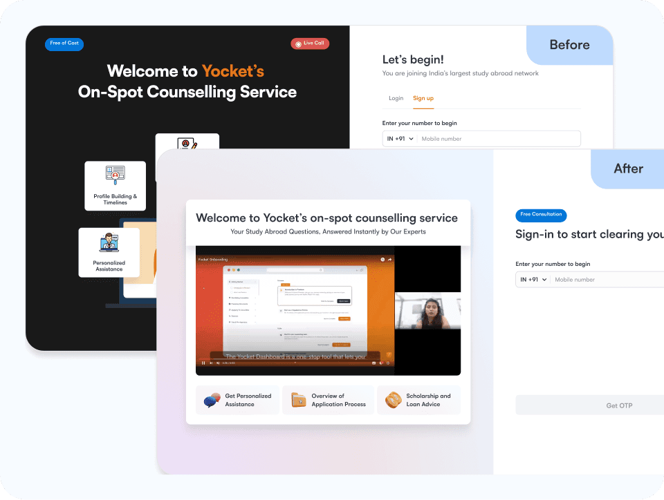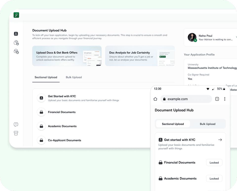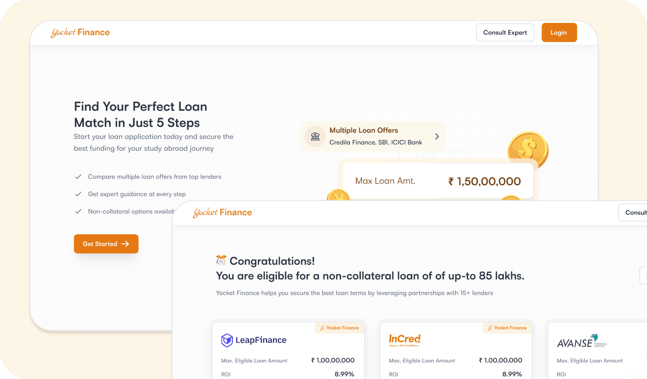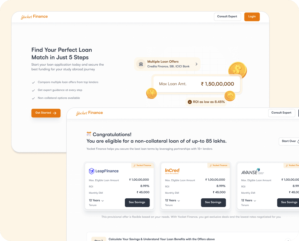 A logged-in dashboard for Yocket Finance that puts students in control. It brings document uploads, application tracking, disbursal, and everything in between into one place